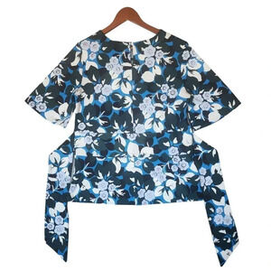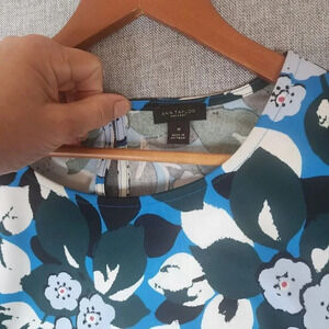 Ann Taylor Factory Top Womens Size Medium Blue Polyester Short Sleeve Floral