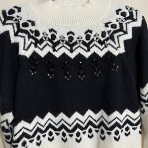 Ann Taylor Fair Isle Embellished Jeweled Sweater White Black Size M