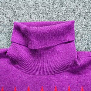 Ann Taylor Fair Isle Turtleneck Sweater Womens Large Purple Red Balloon Sleeve