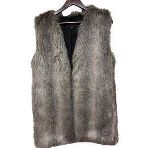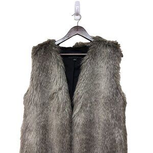 Ann Taylor Faux Fur Long Vest Plush Textured Topper Women's Size Small