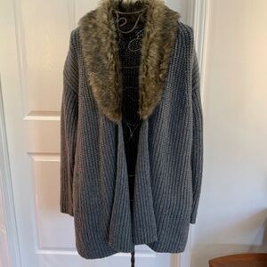 ANN TAYLOR FAUX FUR COLLAR SWEATER SIZE MEDIUM