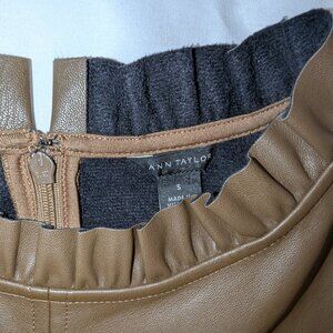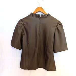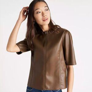 Ann Taylor | Faux Leather Mocha Brown Ruffle Neck Top | Size Small