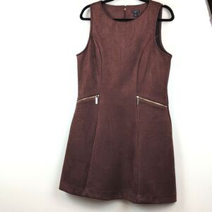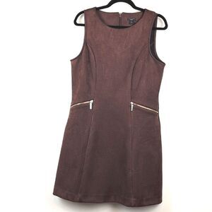 Ann Taylor Faux Suede Brown Sleeveless Dress Gold Zipper Pockets Size 14P