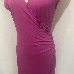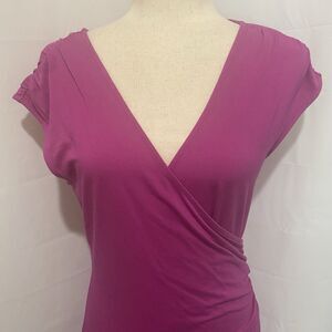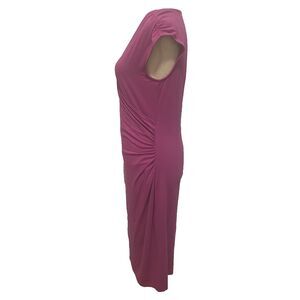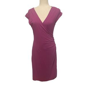 Ann Taylor Faux Wrap Dress Raspberry Sleeveless Side Rouching Midi Career Size M