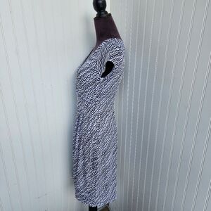 Ann Taylor Faux Wrap Dress White Black Brown V Neck Office V- Neck Stretch Sz 4P
