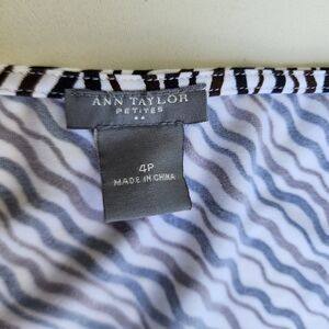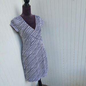 Ann Taylor Faux Wrap Dress White Black Brown V Neck Office V- Neck Stretch Sz 4P