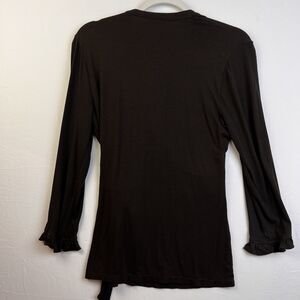 Ann Taylor Faux Wrap Top Women's Small Black Ruffles Career Minimalist V Neck