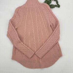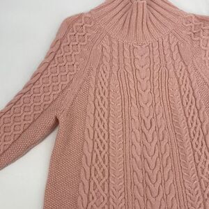 Ann Taylor Fisherman's Cable Alpaca Wool Blend High Low Sweater Pullover Pink S