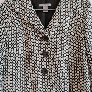 Elevate your wardrobe with this stunning Ann Taylor women's blazer in a timeless black and white floral design. The intricate pattern adds a sophisticated touch, perfect for work, events, or dressing up your everyday look.