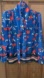 Stylish blue blouse with vibrant red floral pattern. Features a chic tie-neck design. Great for work!
