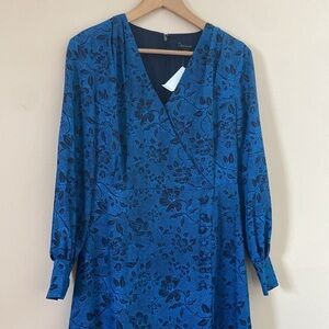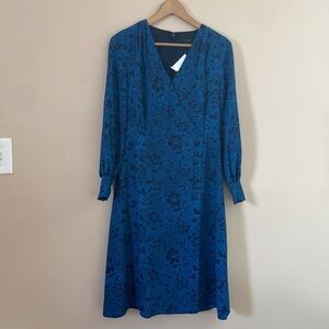 Blooming with fresh florals and button trim, our wrap-effect dress is a sweet pick. V-neck with crossover front. Long sleeves with button cuffs. Shirred shoulder seams. Pleated waist seam. Button wrap edge. Hidden back zipper with hook-and-eye closure. Lined body.
