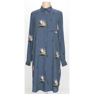 Ann Taylor Floral Button Up Long Sleeve Belted Shirt Dress Size XS Gray Multi