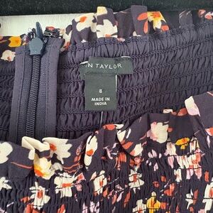 Ann Taylor dress perfect for casual or work settings. Color is dark blue and flowers are beige, pink, yellow and dark orange. Size 8 never worn. See all pics I try to describe colors as best as I can.