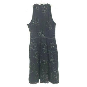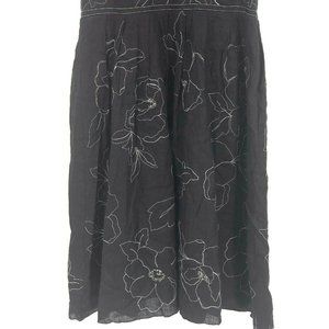 Ann Taylor Floral Embroidered Fit & Flare Dress Black White Women Size 10 Linen