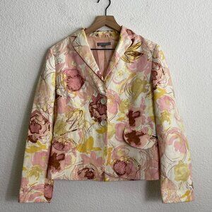 Ann Taylor Floral Jacket Cotton Linen Blazer Size 6
