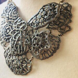 Ann Taylor Floral Lace Cluster Aged Gold Tone Steampunk Goth Statement Necklace