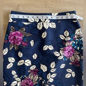 Ann Taylor Floral Lined Pencil Skirt Side Zip Navy Blue Size 0