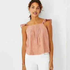 Ann Taylor Floral Linen Blend Pintucked Ruffle Tank Top