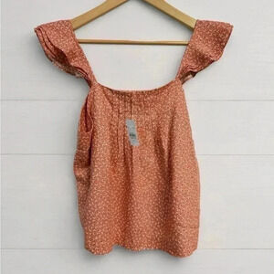 Ann Taylor Floral Linen Blend Pintucked Ruffle Tank Top Size Medium M NWT