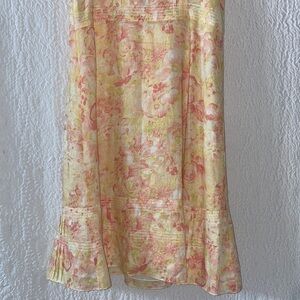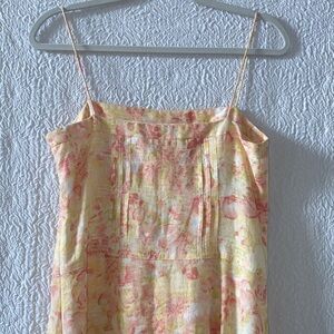 Ann Taylor Floral Linen Flounce Hem Spaghetti Strap A-Line Midi Dress