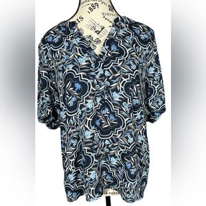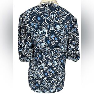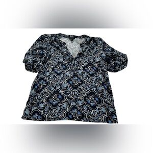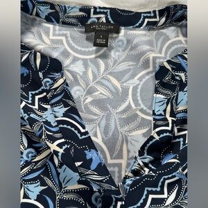 Ann Taylor Floral Print Puff Sleeve Popover. Spring ready. Size SM. Blue/white