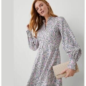 Ann Taylor Floral Puff Sleeve Flare Dress Orchid Glow | Size 10 Petite