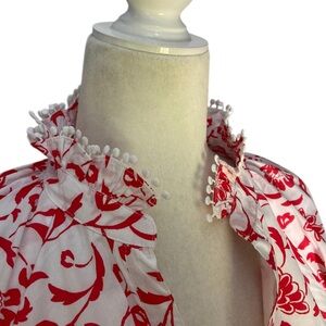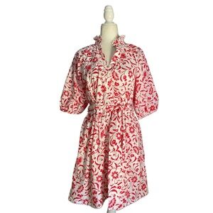 Ann Taylor Floral Ruffle Neck flare Dress NWT in Fiery Red White