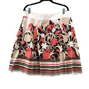 Ann Taylor Floral Skirt 14P A-Line Pleated Coral Beige Cotton Lightweight