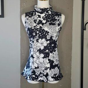 Ann Taylor Floral Sleeveless Mock Neck Blouse