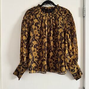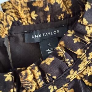 Ann Taylor Floral Smocked Top Yellow Blue Ruffle Neck Long Sleeve Sz S