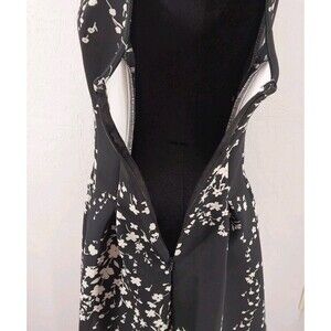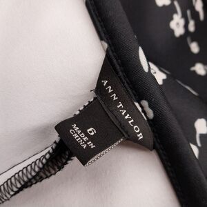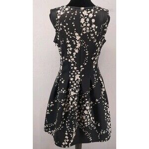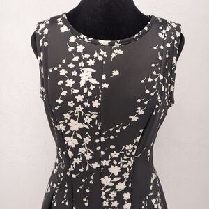 Ann Taylor Floral Stretch Black Cream A Line Skater Pleated Dress Size 6