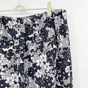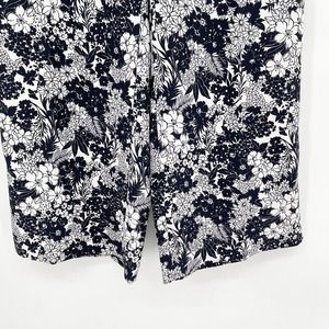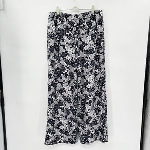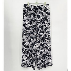 Ann Taylor Floral Wide Leg Pants Black White Size L Elastic Waist Pull On