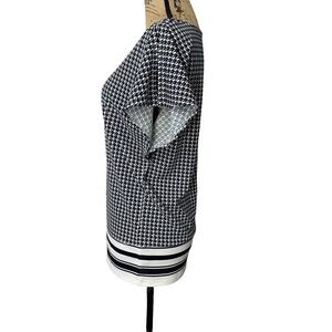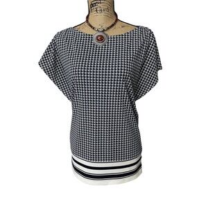 Ann Taylor Flutter Sleeve Blouse Navy and White with Circles and Band Waist Top