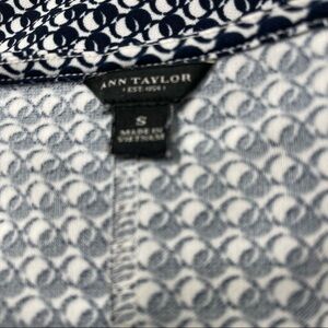 Ann Taylor Flutter Sleeve Blouse Navy and White with Circles and Band Waist Blouse