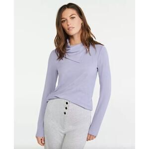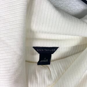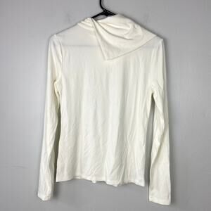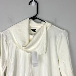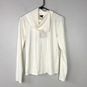 Ann Taylor Foldover Draped Neck Top White Long Sleeve Ribbed Knit Size Small