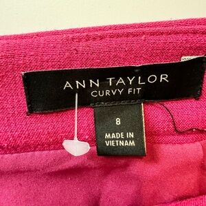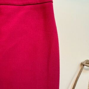 Elevate your wardrobe with the Ann Taylor Fuchsia Pencil Skirt. This knee-length skirt features a bold  hue complemented by a subtle pearl design trim, offering a sophisticated and eye-catching look. Crafted with a streamlined silhouette, it ensures a flattering fit while a small slit at the bottom enhances movement. Perfect for a night out or a professional setting, this skirt embodies elegance and style. Shows some wear but still classic look.