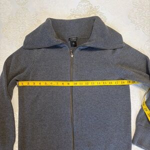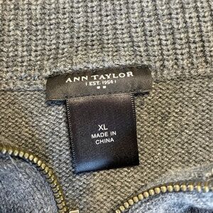 Ann Taylor Full Zip Sweater With Fold Collar 100% Cotton Charcoal Grey Size XL