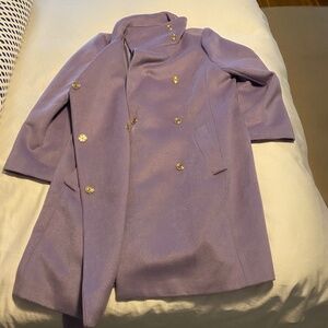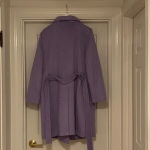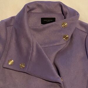 Ann Taylor dusty lavender wool blend coat with funnel neck and hidden snaps. Double breasted snap closure. Front angled pockets. Tie belt. Never worn.