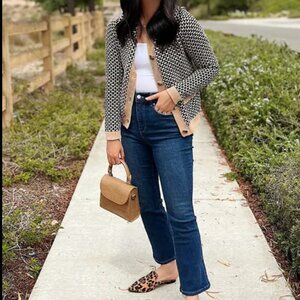 Ann Taylor GEO Stitch Black & White Cardigan Jacket Size S