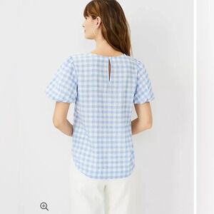 Ann Taylor Gingham Bubble Sleeve Top in blue and white check seersucker blouse