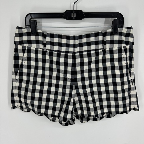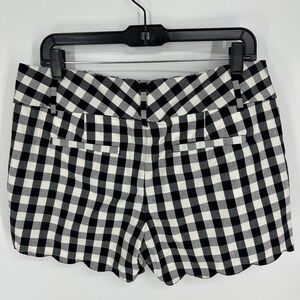 Ann Taylor Gingham Check Scallop Hem Shorts 6 Cotton Black Cream Plaid Preppy