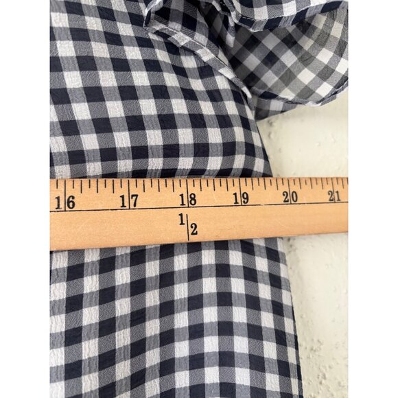 Ann Taylor Gingham Checkered Short Sleeve Blouse With Ruffle Detail