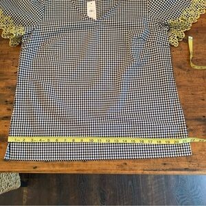Ann Taylor Gingham Flutter Sleeve Black & White Yellow Embroidered Sleeve Sz M