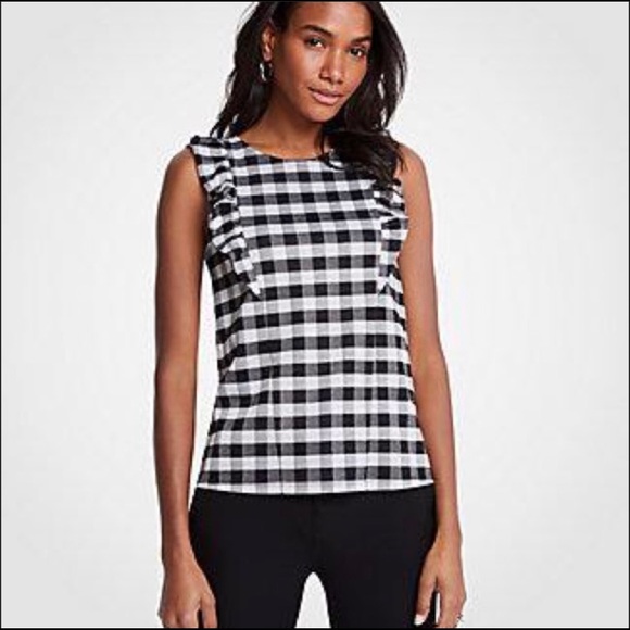 Ann Taylor Gingham Ruffle Shell Top