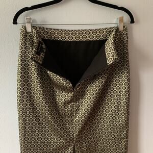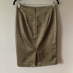 Ann Taylor Gold Black Straight Knee Length Pencil Skirt Size 4