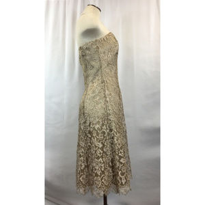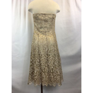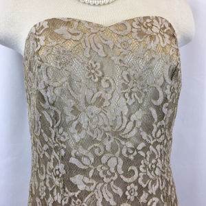 Ann Taylor Gold Lace Sweetheart Neckline Dress 6