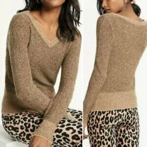 Ann Taylor Gold Metallic Shimmer V Neck Sweater S