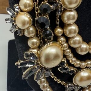 Ann Taylor Gold Multi-Strand Pearl Crystal Statement Necklace Layered