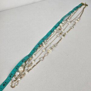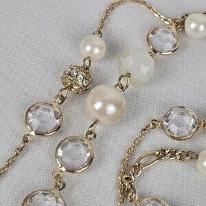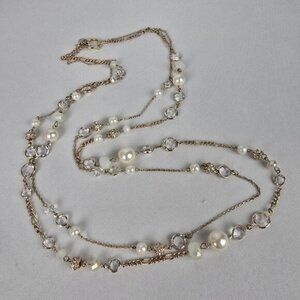 Ann Taylor Gold Tone Faux Pearl Layered Chain Long Necklace