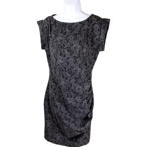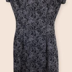 Ann Taylor Gray Black Animal Print Sheath Dress Short Sleeve Small